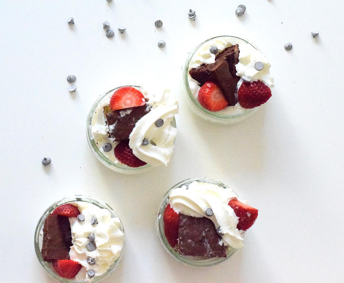 El bizcocho en sí está riquísimo, pero este finde estaba más creativa y lo he convertido en un postre muy veraniego. He hecho unos vasitos de bizcocho de chocolate con nata montada (crema de leche), fresas y perlitas de chocolate, también de Dr. Oetker. Tengo que mejorar un poco la presentación pero de sabor han sido todo un éxito
