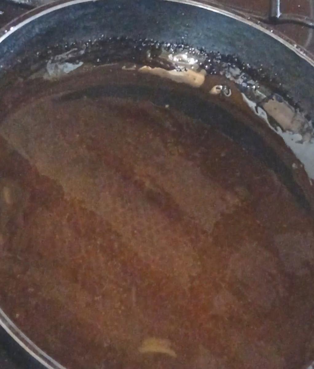 Diluir el caramelo que quedó en el molde y le agregue vino para salsear la Tarantela