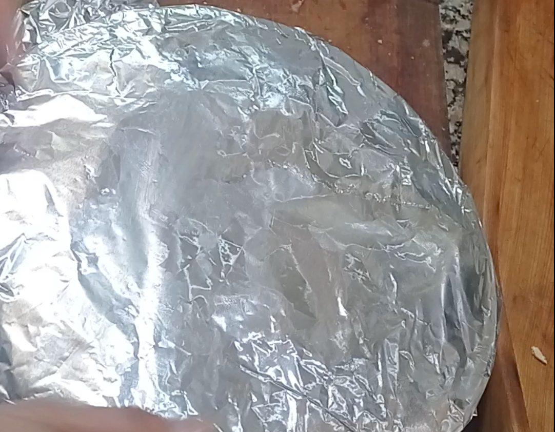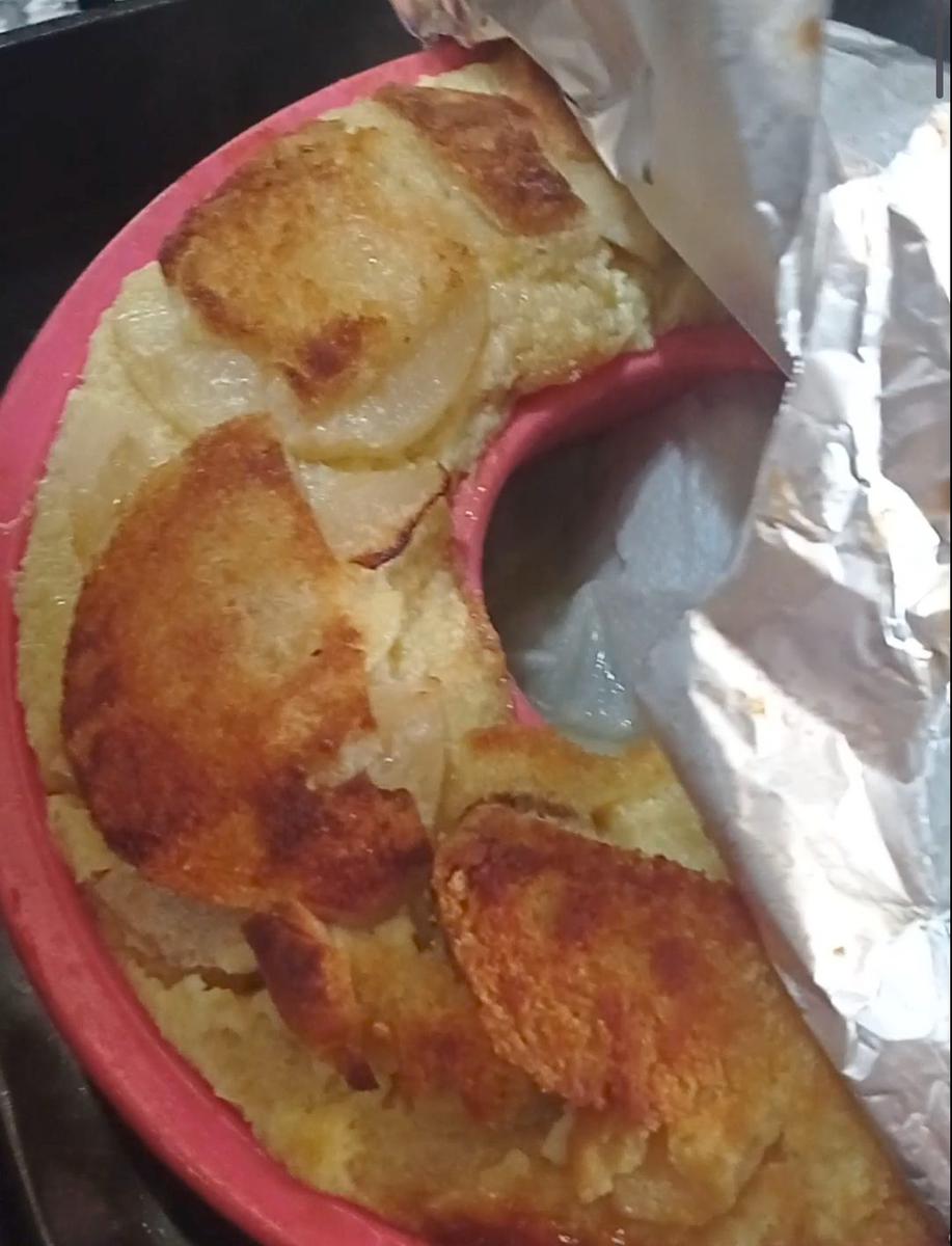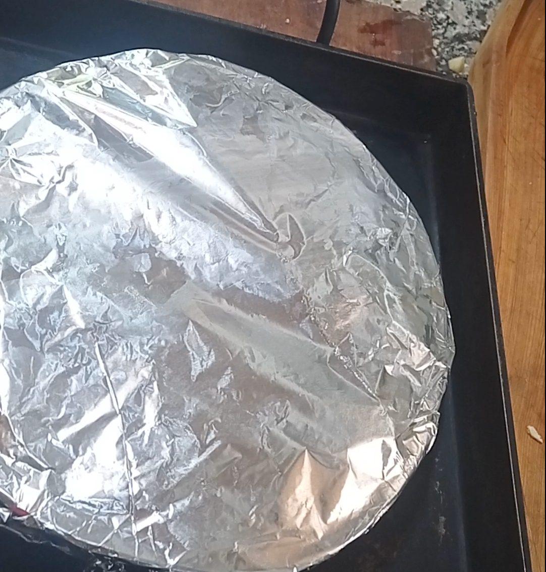 Cubre con papel aluminio y coloca sobre una fuente con las 3/4 partes de agua, a Baño Maria.