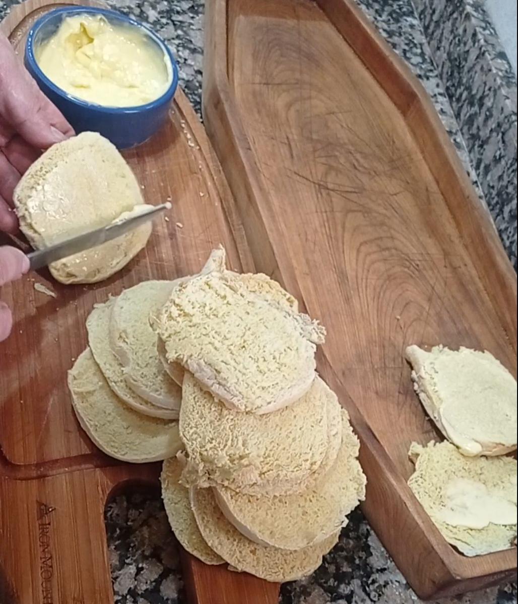 Corta tu pan elegido en 12 rebanadas de pan y si es lactal quita la corteza.