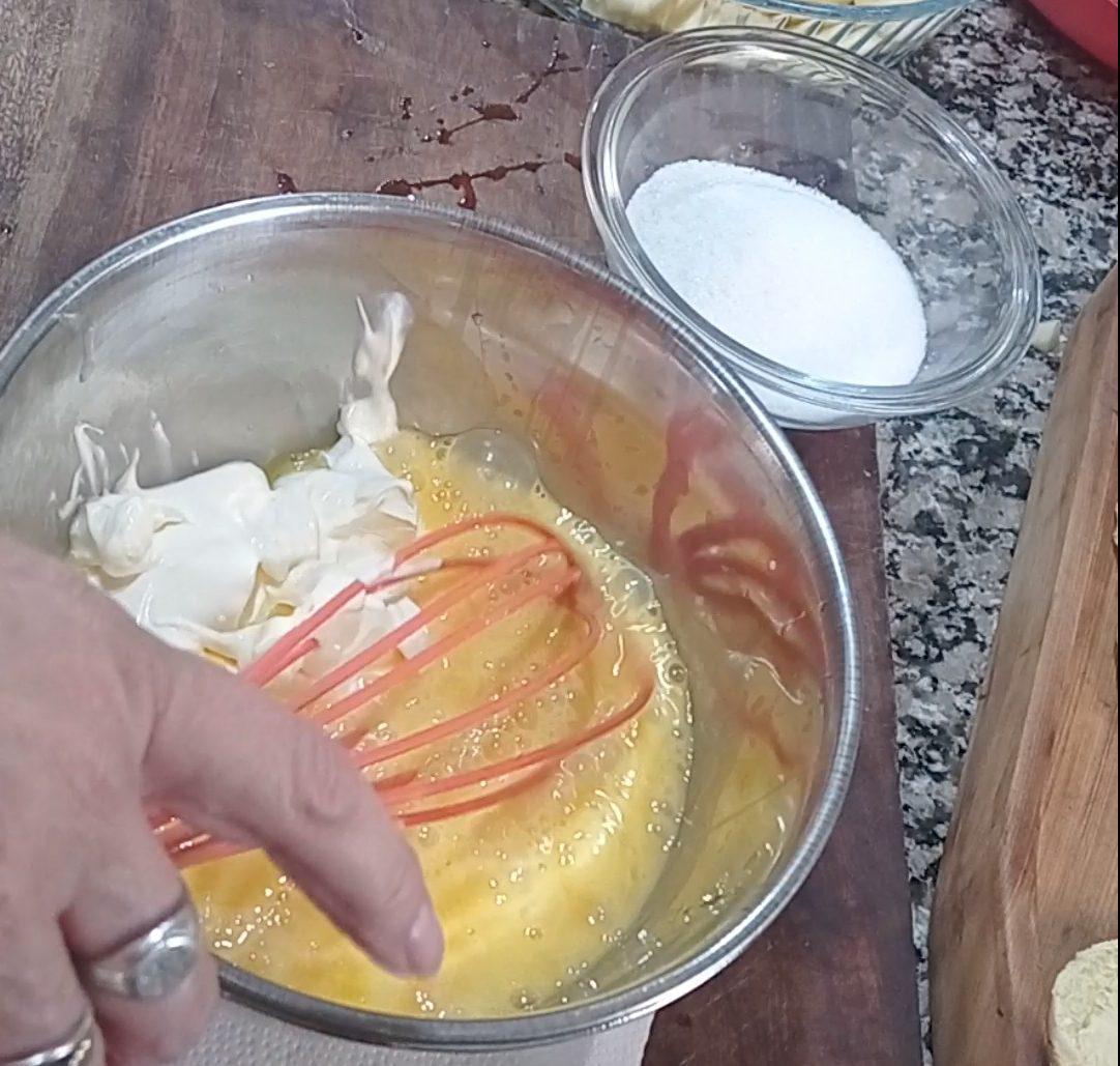 Bate en un bol los huevos , la crema y el azúcar,por ultimo la esencia, solo bate hasta unir