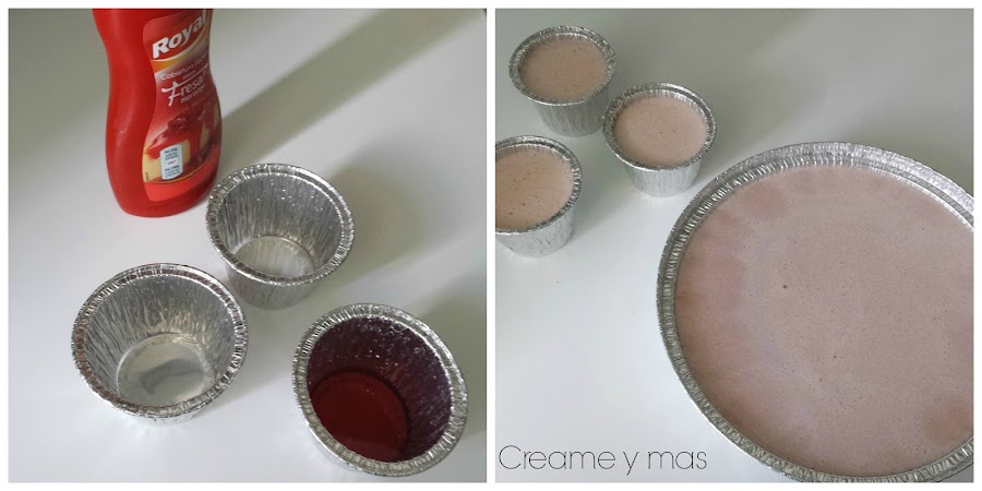 Para finalizar, vertemos la mezcla en los moldes que elijamos. Podemos poner en el fondo el sirope y luego verter la mezcla, o simplemente decorar con sirope una vez desmoldado.