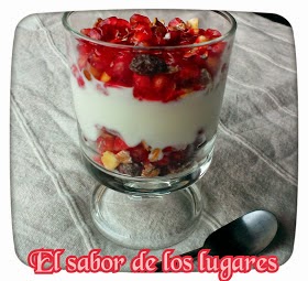 En el blog "Postres Originales" presentan una Tarta fría de yogur y granada que es un postre fácil de elaborar y muy ligero y con pocos y sencillos ingredientes y podemos ver como lo elaboran en el siguiente enlace.