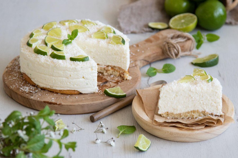 3. Tarta de queso sin horno con base de bizcocho y leche condensada, lima y coco: volvemos de nuevo a los sabores tropicales que nos hacen viajar hasta las playas de arena blanca y agua cristalina del Caribe. A diferencia de las anteriores, este pastel no está elaborado en capas y, en la base, en vez de galletas lleva una capa de bizcochos de soletilla.