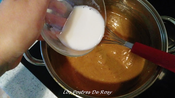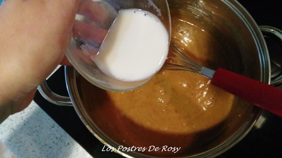 - Agregamos el agar diluido, y, sin dejar de batir, llevamos a ebullición durante 3-4 minutos.