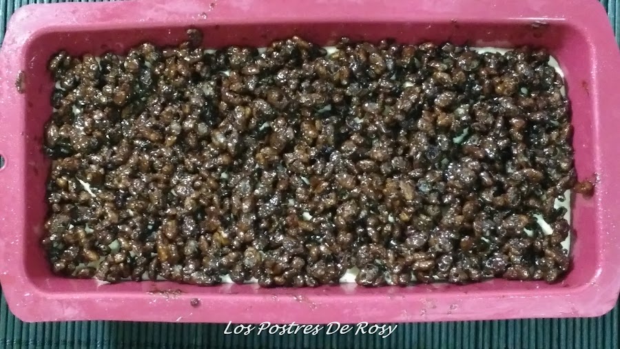 - Disponemos el crunch sobre nuestra mousse y llevamos a la nevera durante unas 4 horas apoximadamente.