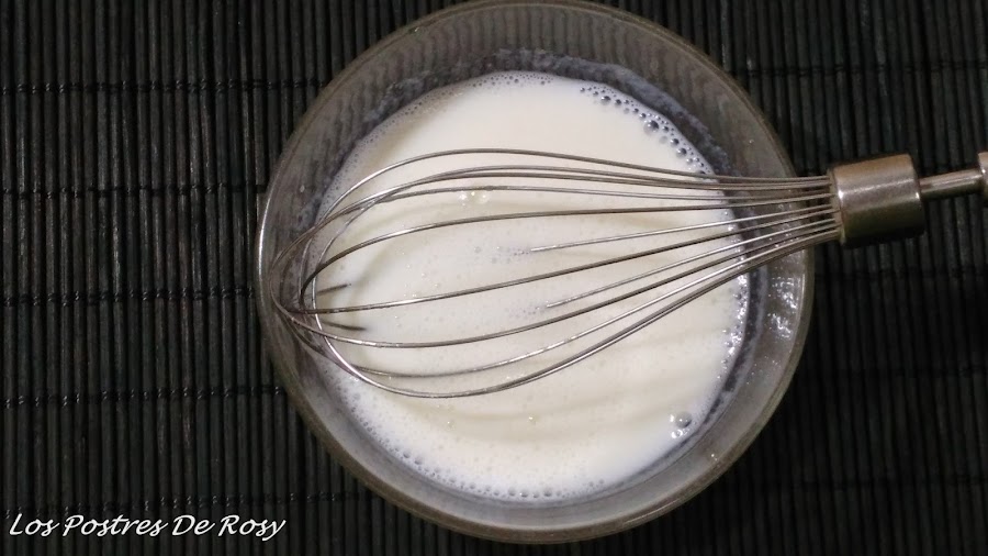 - Montamos la mitad de la nata (crema de leche) de soja.