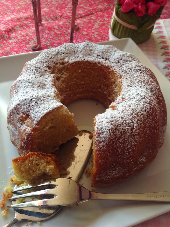 Este bizcocho de aspecto fantástico es de Pattys cake. También lleva fruta en su elaboración y al usar almendra molida y no harina es apto también para celíacos, por lo que es una receta altamente recomendable y si no, echadle un vistazo a su página y lo comprobaréis vosotros mismos.