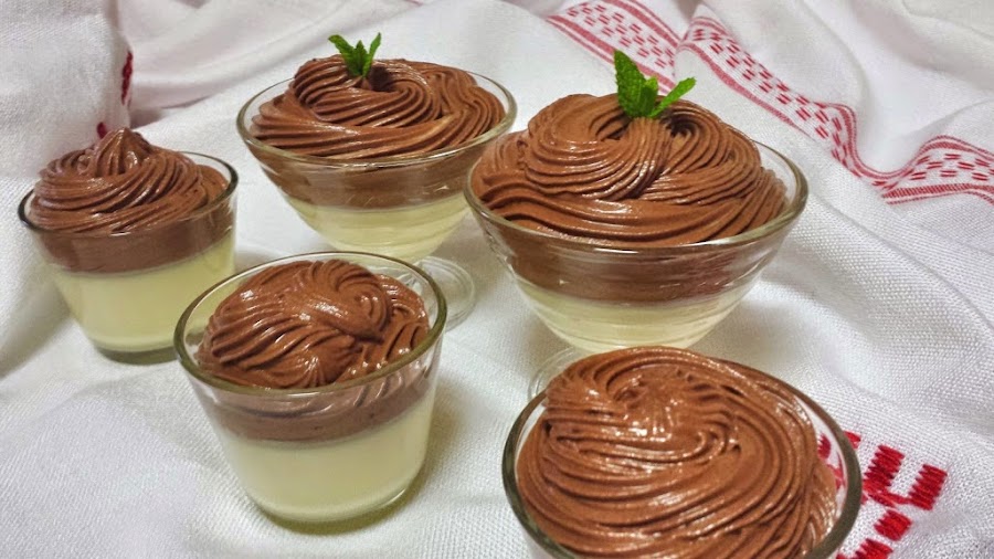 Para este postre, nos vamos a ayudar del microondas que nos va a facilitar la tarea. Una fusión de dos deliciosos postres que no puedes dejar pasar. Una mousse de chocolate súper sencilla con sólo dos ingredientes (sin huevos) que montaremos sobre una panacota hecha con nata (crema de leche) (crema de leche), gelatina y azúcar.
