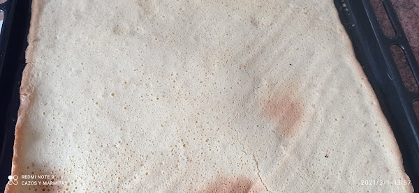 Volcar unas cucharadas de éste preparado encima del bizcocho y refrigerar.