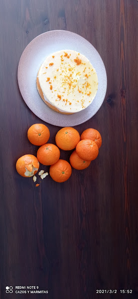 Adornar con ralladura de mandarina, azúcar glas, o gajos de mandarina.