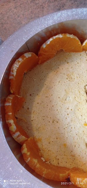 Colocar encima del preparado la gelatina de mandarina del molde de 12 cm.