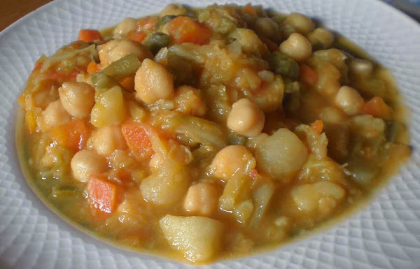 Es un guiso muy típico del otoño y del invierno, y se hace a base de legumbres, verduras y frutas.