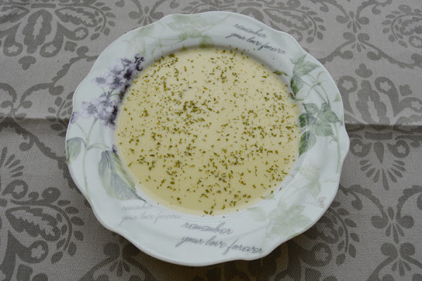 Esta vez fui más valiente {o más osada, según se mire}. Por eso, aunque la inspiración está en Julia Child, no sé cuánto ha quedado de ella en mi Potage Parmentier. Nada de mantequilla, ni nata (crema de leche), ni crème fraîche. Como concesión a la suavidad de la crema, una cucharada de queso crema. Espero que la pobre no se esté revolviendo en su tumba, mientras recuerdo aquello que decía de que "nunca, en una receta, hay demasiada mantequilla"...