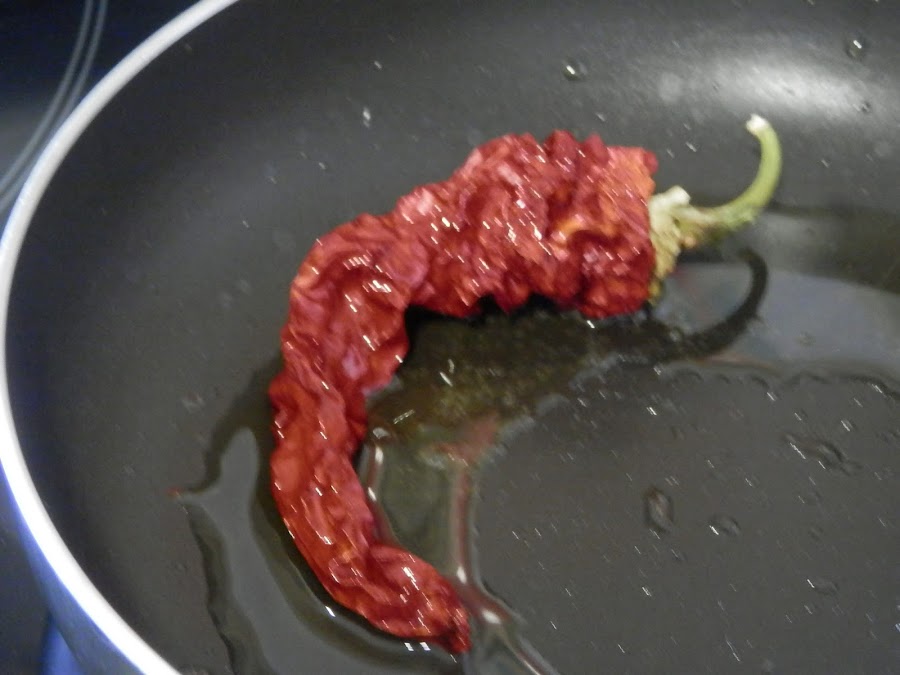 El secreto de este plato es no quemar el pimiento, si no, la comida amargará, de ahí que lo empecemos a hacer muy despacio y luego vayamos subiendo la temperatura, vigilando siempre que vaya tostando sin quemarse.
