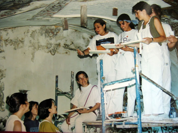 Desde el principio tenía muy claro que mi especialidad en la carrera iba a ser pintura, pero lo más asombroso de todo es que yo iba de cabeza a por la pintura mural. Nada de batita impoluta y caballete con un lienzo manejable. No, yo soñaba con andamios, con figuras de tamaño descomunal, con cal y yeso. Estaba y estoy enganchada con todo tipo de estucos. En fín, nada muy femenino.