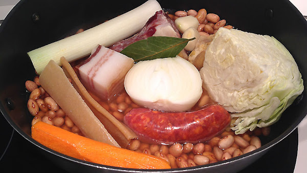 Pon en remojo las alubias la noche anterior. Has de poner el triple de peso de agua que de alubias. Es decir, si las alubias son 250 gr has de poner en remojo con 750 ml de agua.
