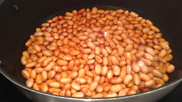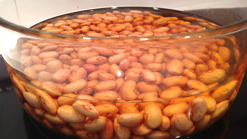 Cubro con agua 2-3 dedos por encima de las alubias.