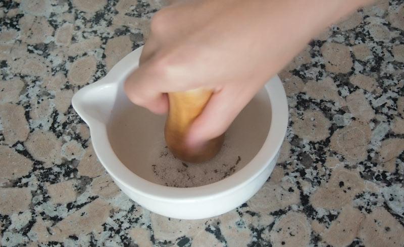 Lo vamos a dejar al fuego durante unos 45 minutos o una hora. Si lo vas a hacer en olla rápida el tiempo se reduce a la mitad prácticamente, así que con que lo dejes unos 20 o 25 minutos estará bien. Esto dependerá de tu olla. Si ves que necesita más tiempo de cocción lo dejamos unos minutos más.Cuando lleve unos 20 minutos de cocción, en un mortero vamos a añadir unos granos de comino y una cucharadita de sal. Lo vamos a majar todo junto para sacarle todo el sabor al comino.Cuando lo tengamos lo añadimos al potaje y removemos.