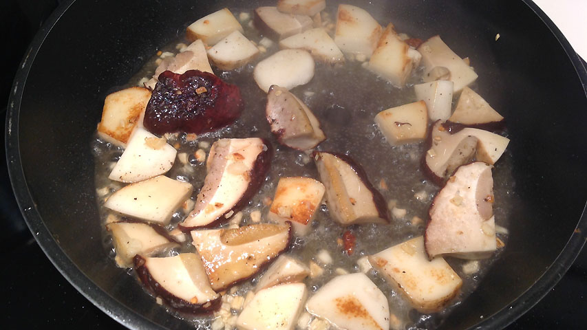 Añade una copa de vino fino y deja evaporar el alcohol.
