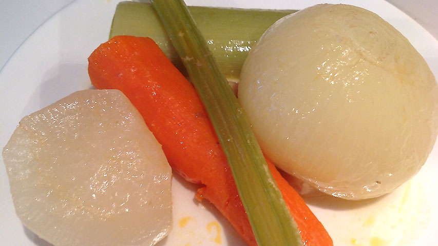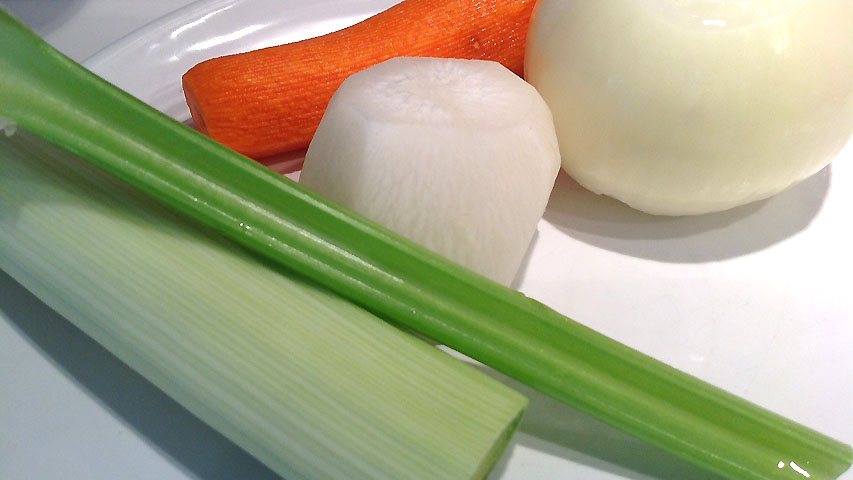 Las verduras que he utilizado: cebolla, puerro, zanahoria, apio y nabo.