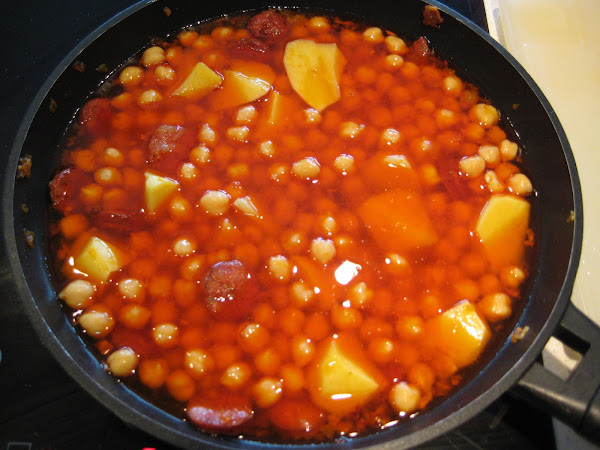 Elegí un puchero que está de muerte!!! Potaje de Garbanzos con chorizo y patatas, es muy fácil de hacer, que solo te llevará 30 minutos.