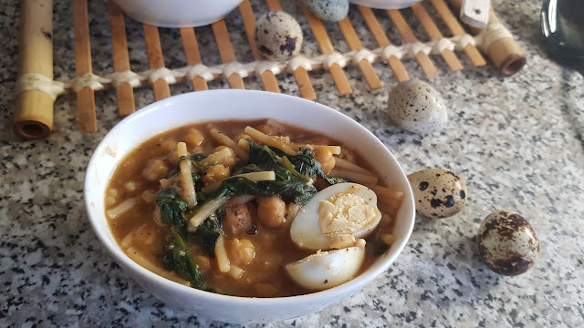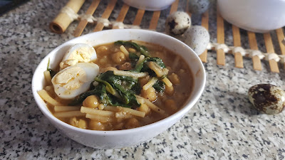 POTAJE de GARBANZOS con ESPINACAS y FIDEOS