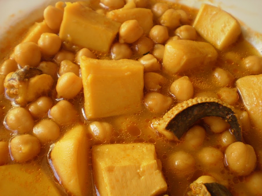 Como es habitual, casi cada semana desde el puesto de Antonio del Mercado de Huelin, llega una hermosísima jibia a Mi Cocina, casi, casi viva…de dos kilos de peso. Ella me hace disfrutar de múltiples formas a la hora de degustarla (les animo a poner la palabra en el buscador del blog y les garantizo que se sorprenderán; dos kilos dan para mucho, y hoy con media jibia he preparado éste reconfortante potaje de garbanzos ¿Lo probarán?