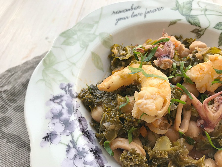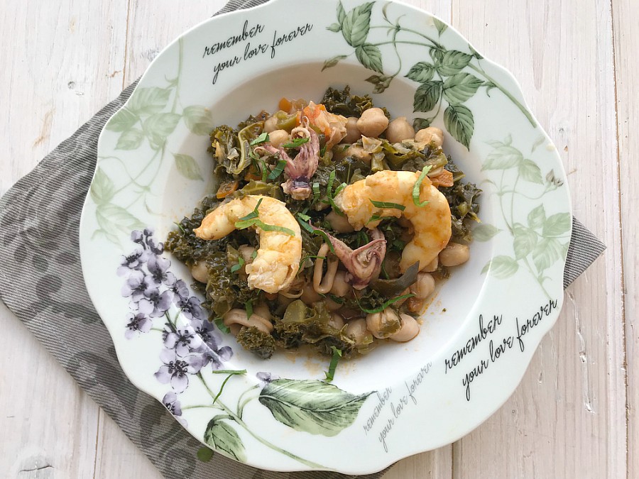 Además del kale, he incluido otro ingrediente que no es muy habitual, pero que resulta fabuloso en combinación con las legumbres. Se trata del alga kombu que, además de aportar numerosos minerales, ayuda a que nuestras legumbres queden más tiernas al cocinarse.