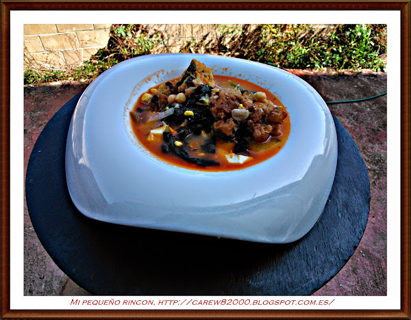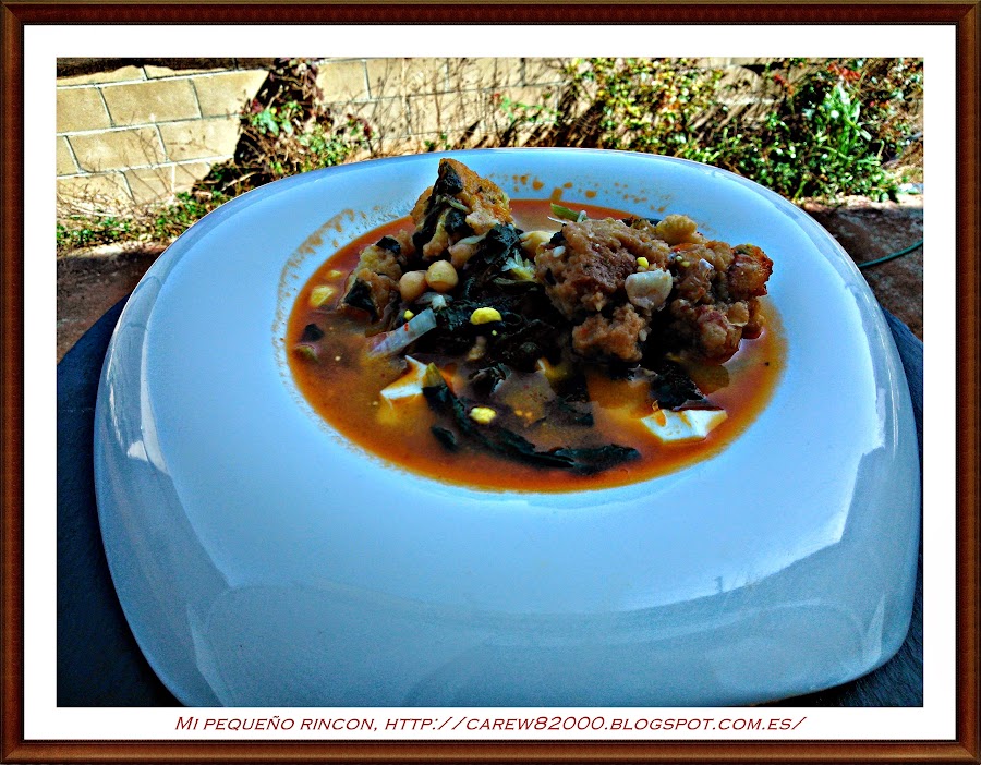 Y ya tenemos el potaje hecho, a este le he añadido unos buñuelos de bacalao, (la receta la podéis encontrar en el blog), le da un gran sabor y queda muy bueno.