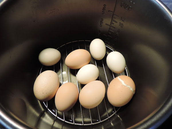Para hacer los huevos, ponemos la rejilla en la cubeta de la olla, y echar agua sin llegar a cubrirla, los huevos encima.
