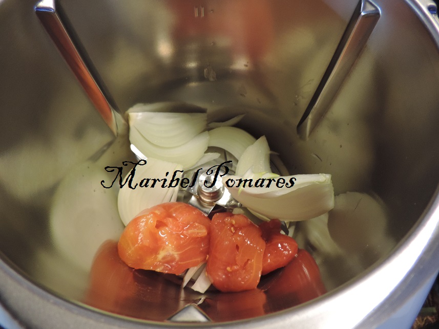 Ponemos la cebolla y el tomate en el vaso del thermomix.