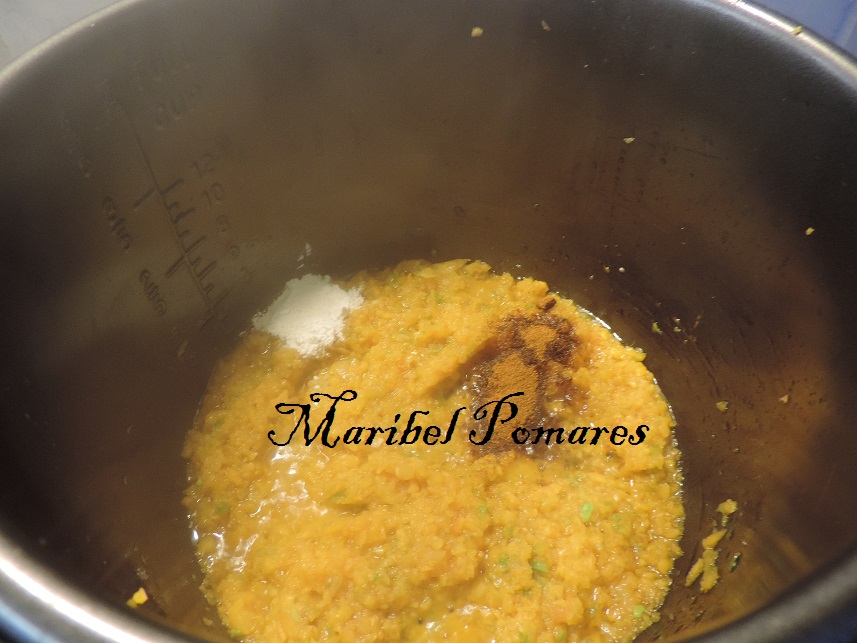 Añadimos la harina y el pimentón dulce, mezclamos bien y dejamos que termine el tiempo programado.
