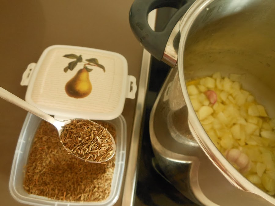 Transcurrido el tiempo agrega la cucharadita de cominos y déjalos que se sofrían durante 1 minuto removiéndolos de vez en cuando con tu cuchara de madera.