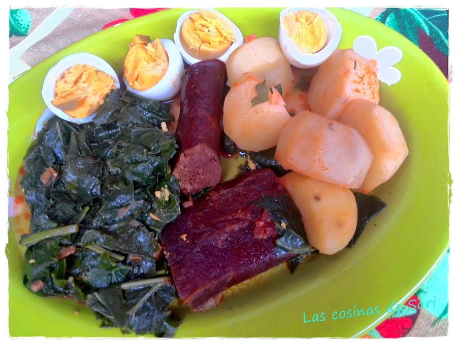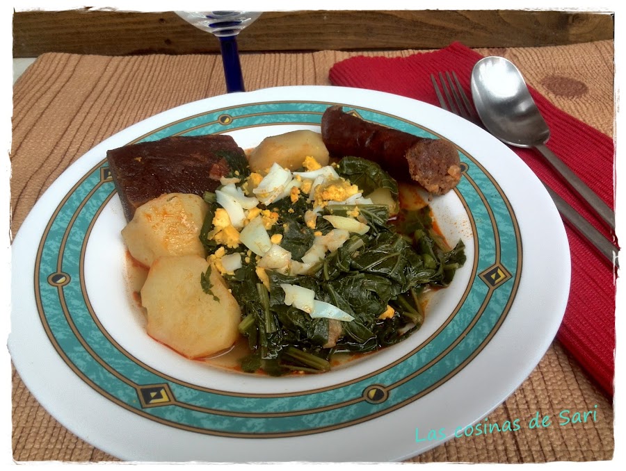 Potaje de grelos con patatas y compango.