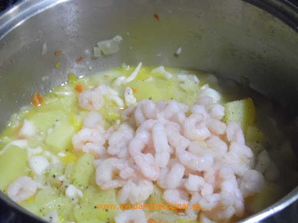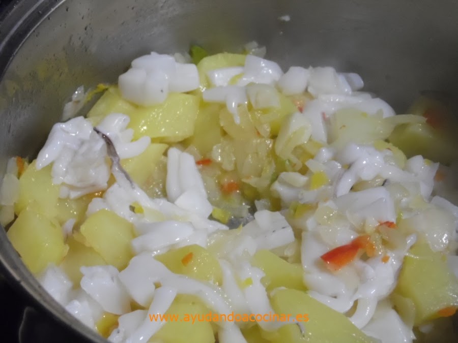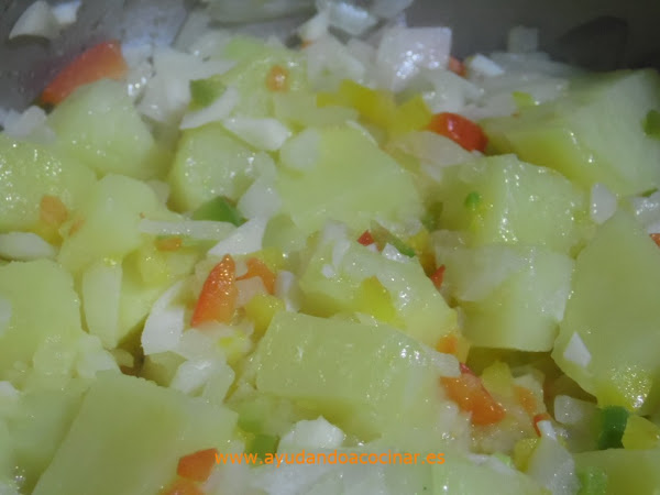 También incorporar las patatas cortadas en cuadrados no muy grandes.