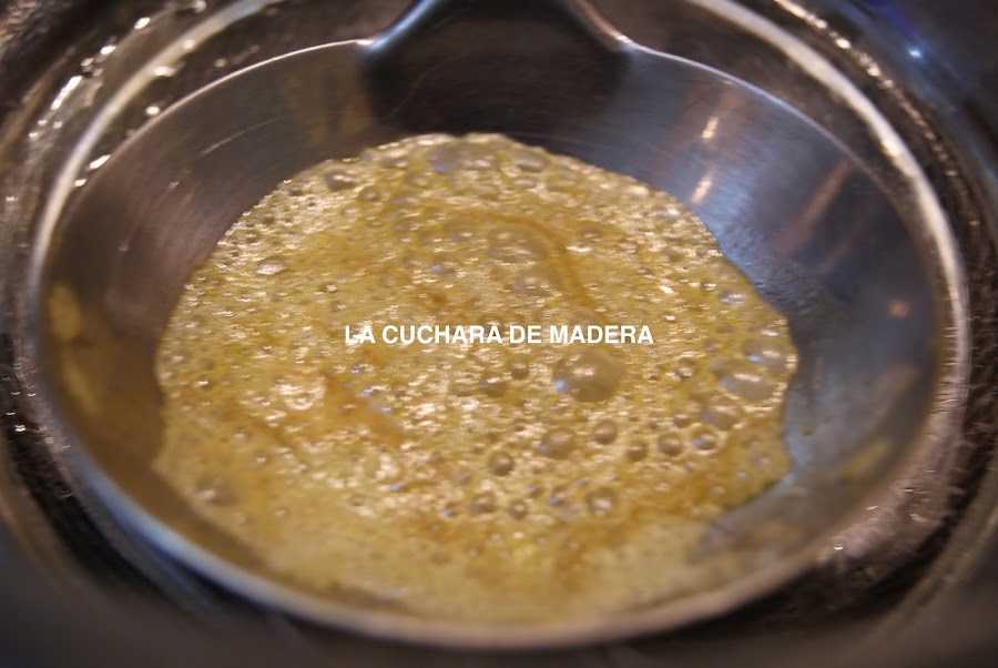 Dejamos que hierva y procedemos a quitar la espuma que hay en la superficie con una espumadera o con un cucharón