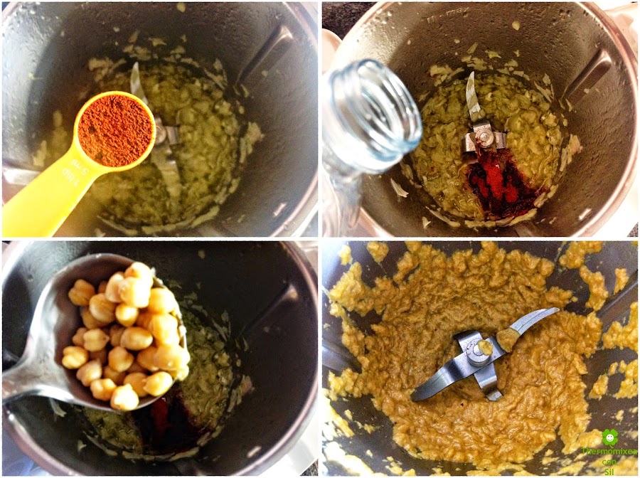 Añade el pimentón, 80 gr. de garbanzos cocidos y 10 ml. de agua.