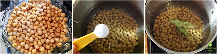 Los cocí en agua, sal y dos hojas de laurel en la olla exprés 30 minutos a partir de que empezó a hervir. También los puedes cocer en la Thermomix.