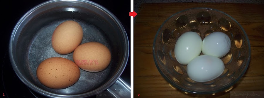 Mientras tenemos los garbanzos al fuego, aprovechamos para preparar otras cosas, como cocer el huevo, pelarlo y dejarlo reservado (yo hice más porque había previsto hacer otra cosa con el resto).