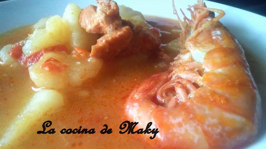 Ahora echamos el atún , dejamos cinco minutos, añadimos el gambón, rectificamos de sal si es necesario, dejamos cinco minutos más y retiramos del fuego.