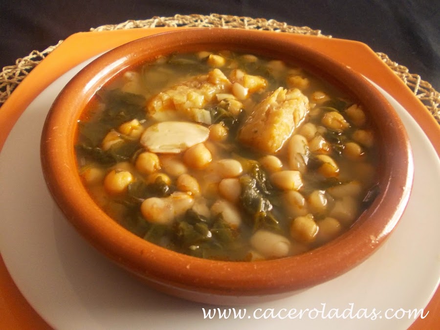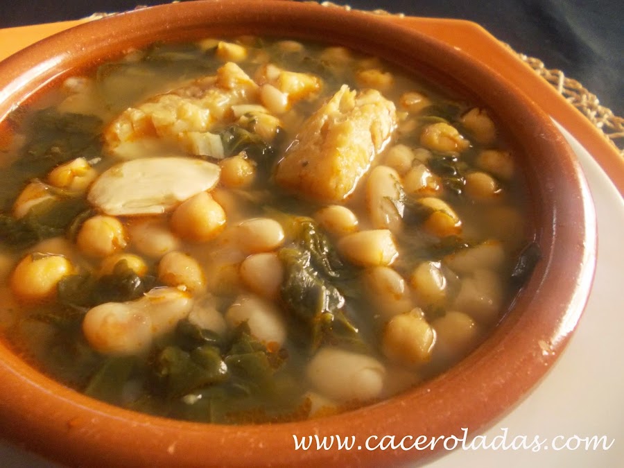 Nota: Si no queréis echarle las judías blancas, que lo habitual es hacerlo sólo con garbanzos, pues no se las pongáis. Como os he comentado antes, es la manera que en casa se ha preparado siempre y a nosotros nos gusta mucho... Os lo dejo a vuestra elección, con o sin ellas, el guiso estará estupendo...