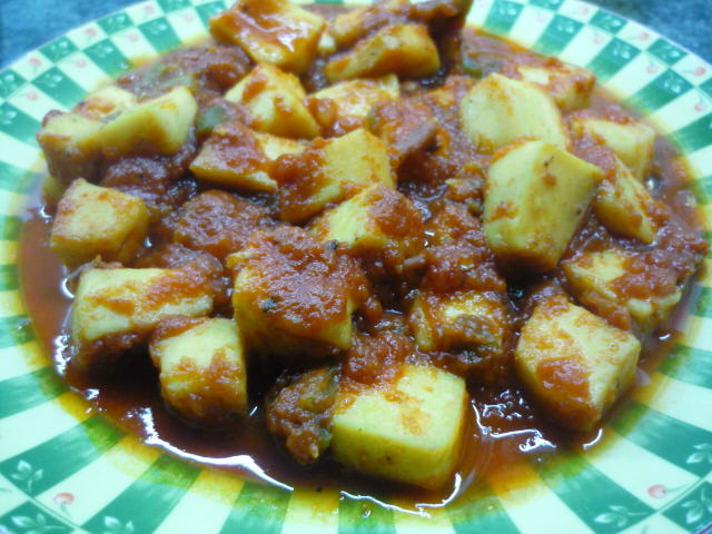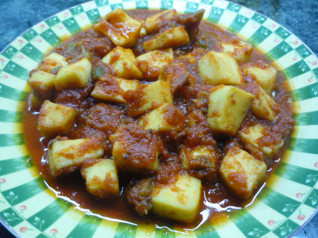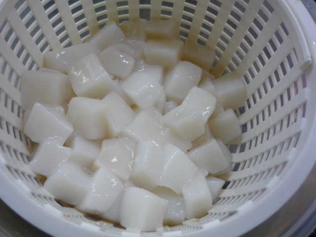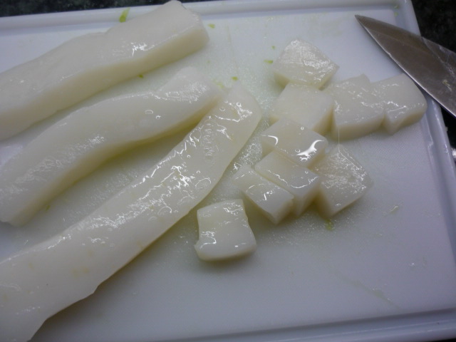 2.- Cortamos la pota en dados gordos y enjuagamos muy bien.