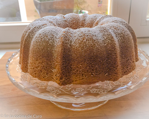Precalentamos el horno a 160º. Engrasamos el molde de bundt cake con spray.