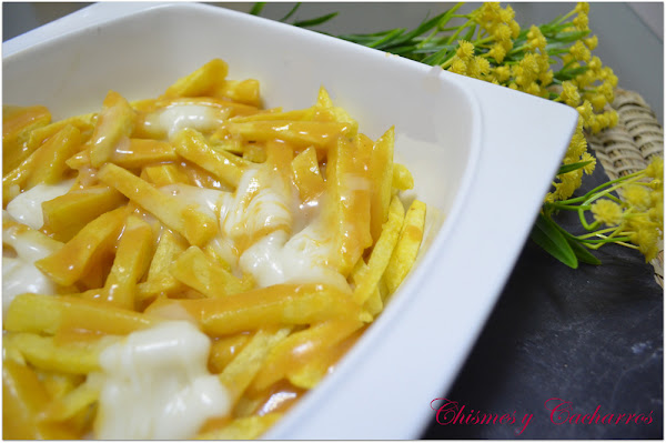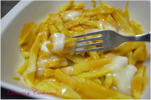 Esta receta es originaria de Canada de la zona de Quebec, es un plato muy común se vende en puestos callejeros, en restaurantes de comida rápida y según la wikipedia en los comedores escolares. Es muy sencillo de hacer y allí mucho más que venden la salsa en lata para hacerlo aún más fácil. Pero tranquilo que como verás en muy sencilla la salsa, vamos con la receta: