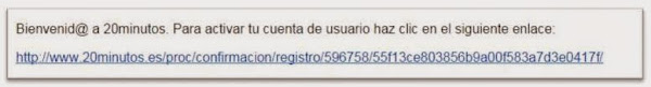 Paso 2. Os enviaran un correo electrónico para activar vuestra cuenta en 20 minutos. Solo hay que darle al link para activarla.