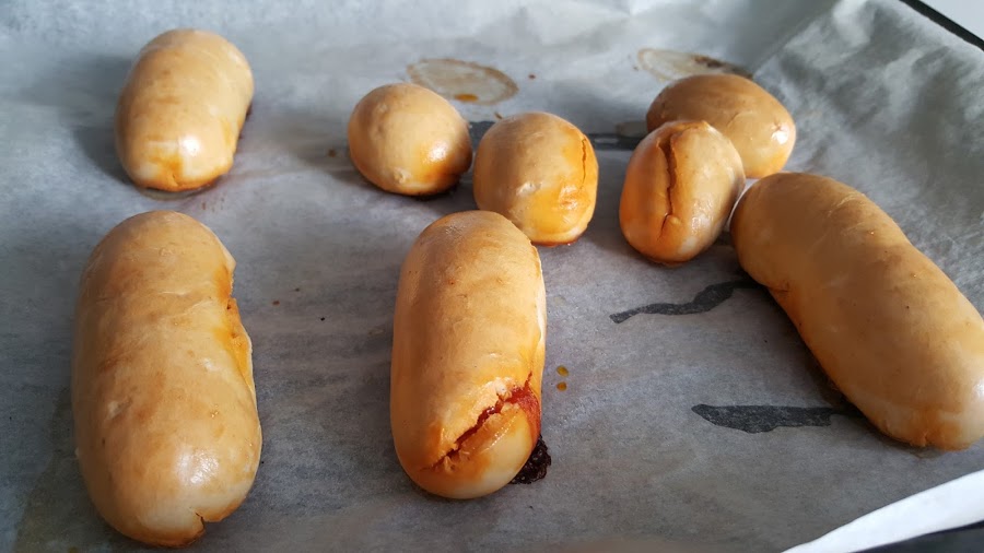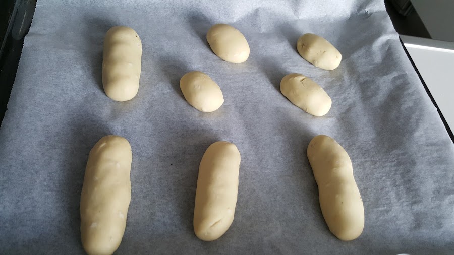 Hice poca cantidad, y dos tamaños, unos alargados, tamaño "pepito" y otros la mitad, como unas bolitas. Para mi gusto, mejor los enanos, pero esto es cuestión de gustos....