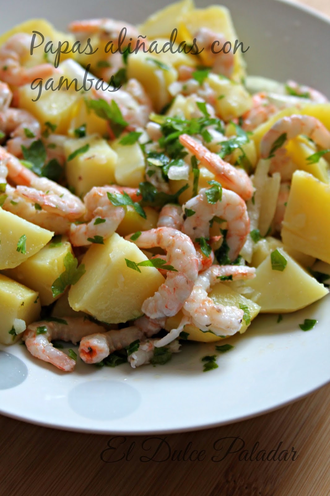 Esta variante de las papas aliñás (patatas aliñadas) con gambas que nos trae Adela de El dulce paladar, es para empezar y no parar. Ahora en verano que nos gusta el marisco, no dejes de hacerla porque está de miedo. Ese sabor que le da la gamba es fantástico.