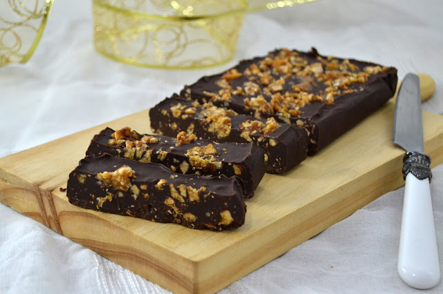 Y para los amantes del chocolate negro como yo, no os podéis perder este turron de chocolate negro con praline que me encontré en Cuuking