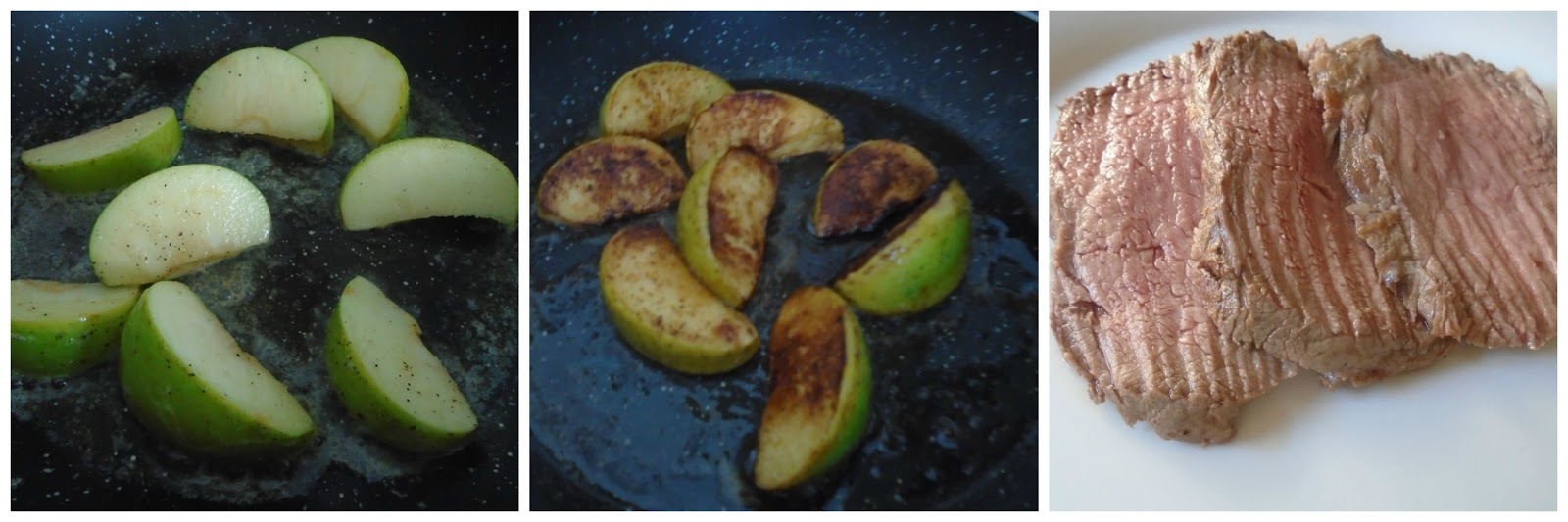 Cortar el resto de la manzana en gajos ( con su piel) y dorarlos en una sartén con un poco de mantequilla, sal y pimienta.